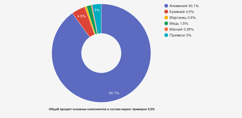 | Алюминий (Al) | 88,1-93,05% | Основа сплава, обеспечивает малый удельный вес и базовые свойства |