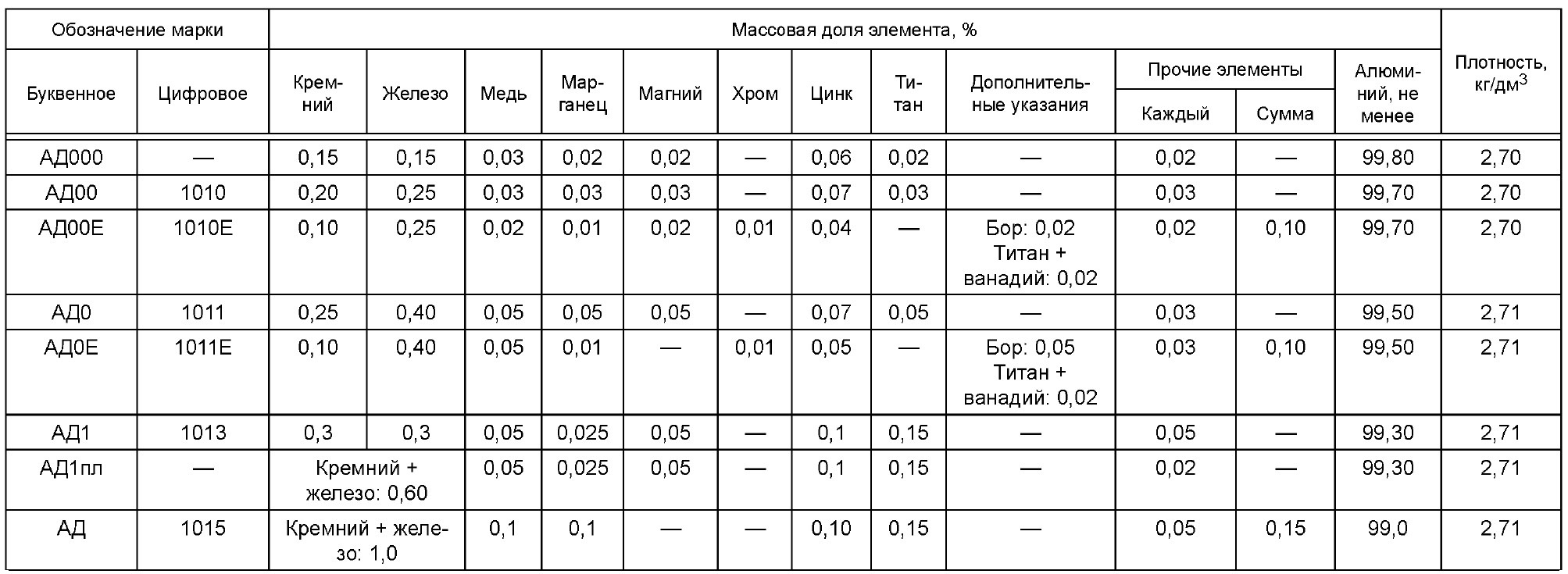 Согласно ГОСТ 4784-2019, алюминий марки АД1 имеет следующий химический состав: