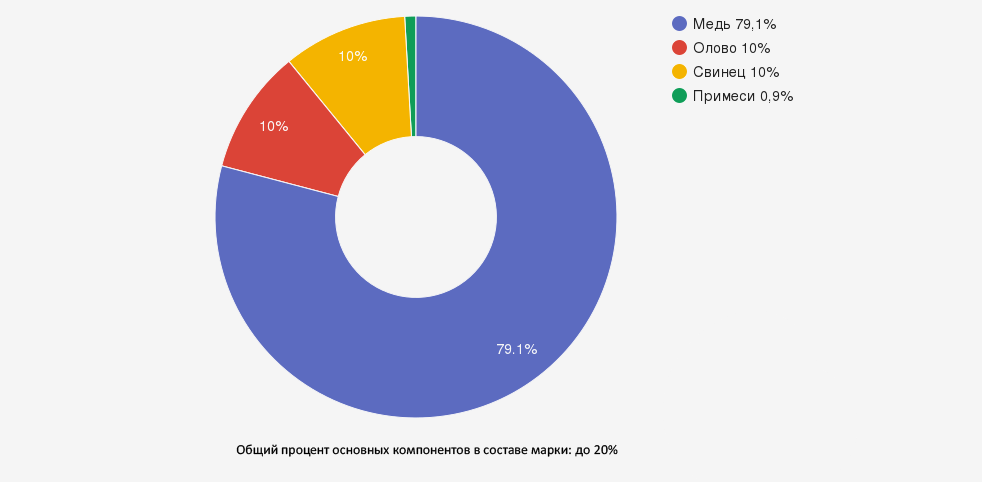 Химический состав сплава БрО10С10 строго регламентируется государственным стандартом и представлен в таблице ниже: