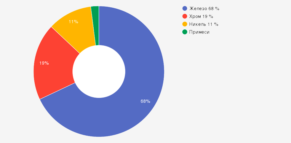 | Хром (Cr) | 17-19 | Обеспечивает коррозионную стойкость, формирует защитную пленку Cr₂O₃ |