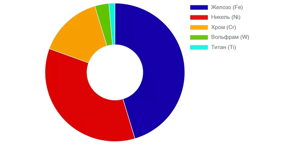 Химический состав сплава ХН35ВТ регламентируется ГОСТ 5632-72 и включает следующие элементы: